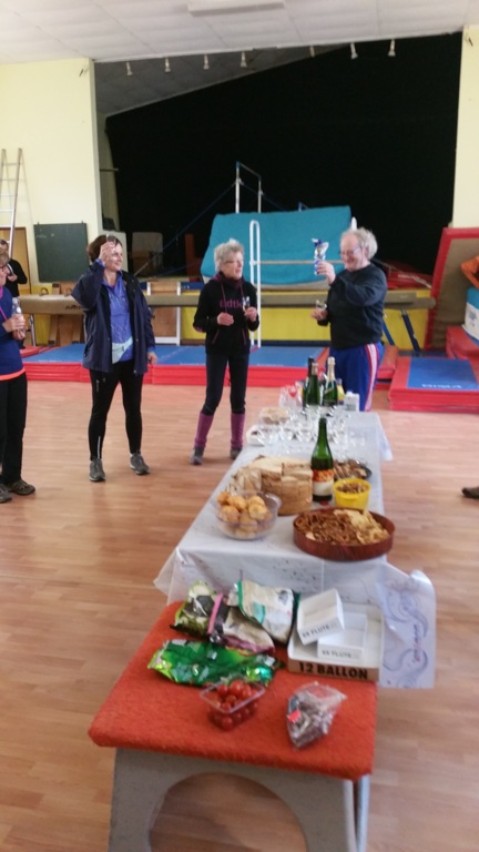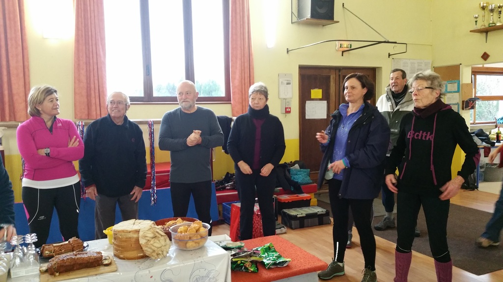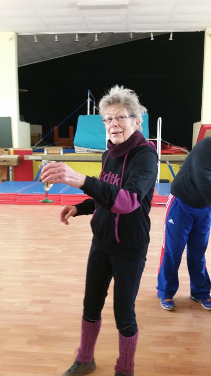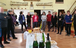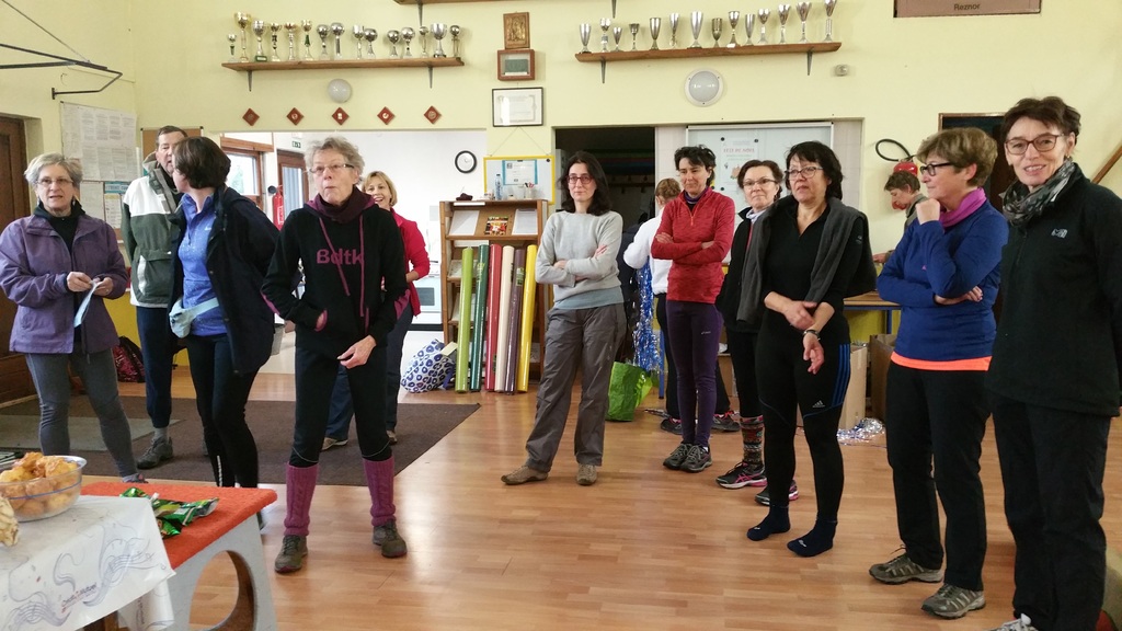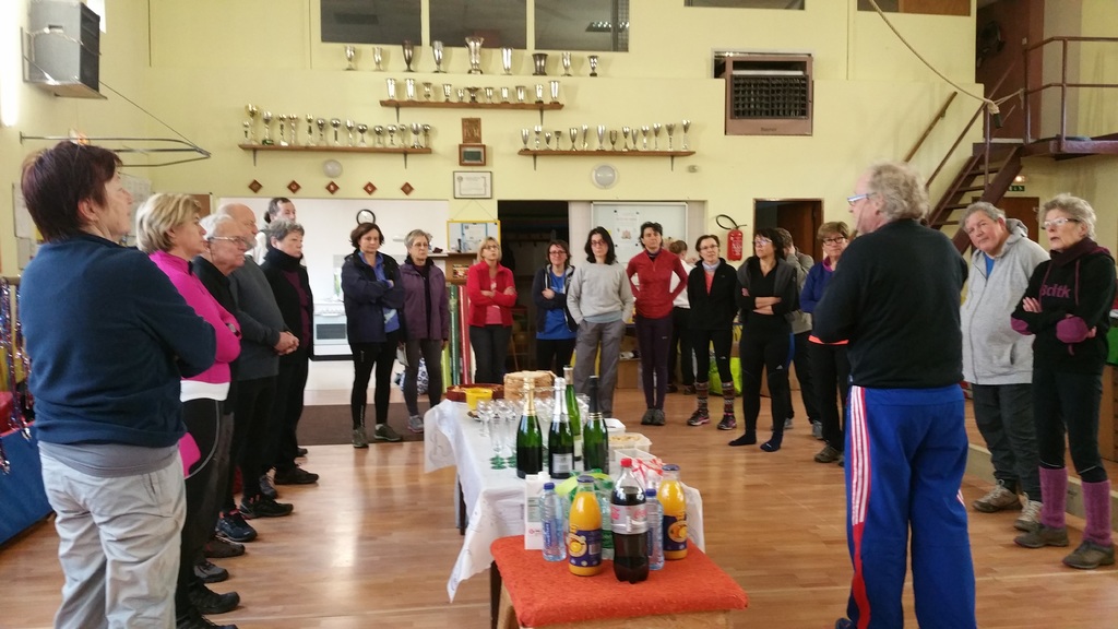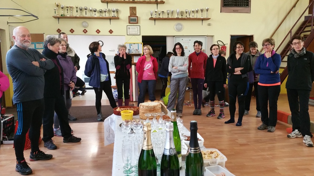 Rénate partage, avec les membres de la section de marche nordique, son trophée reçu à l'occasion de la montée du Mont Saint Odile le 11 novembre